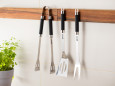 Svaki dodatak dolazi u jedinstvenom dizajnu sa dugačkim ručkama koje osiguravaju sigurnu i praktičnu upotrebu tokom roštiljanja. Pribor sadrži i kukicu za vješanje za lakše odlaganje.